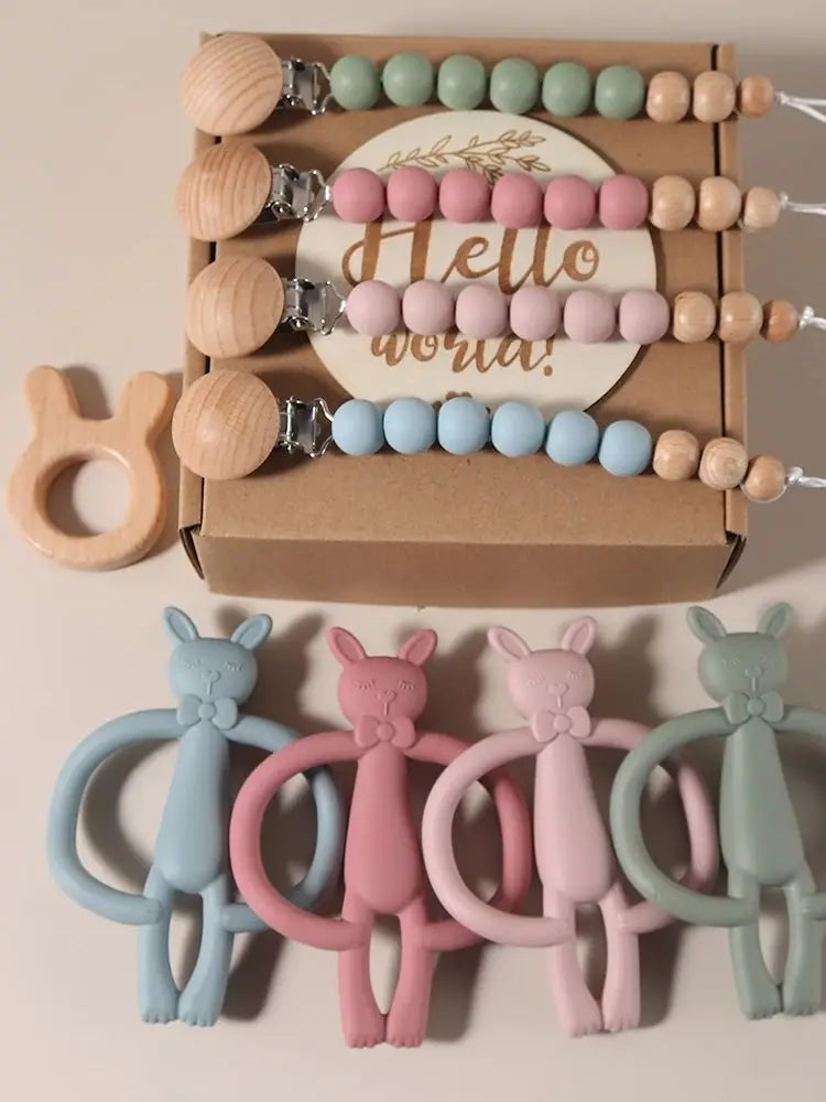 Material: wood milestone; pacifier chain;food grade silicone teether, wood teether